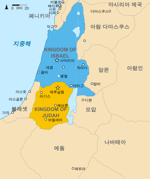 위 사진의 노란색 부분이 유다 왕국의 영역입니다.
