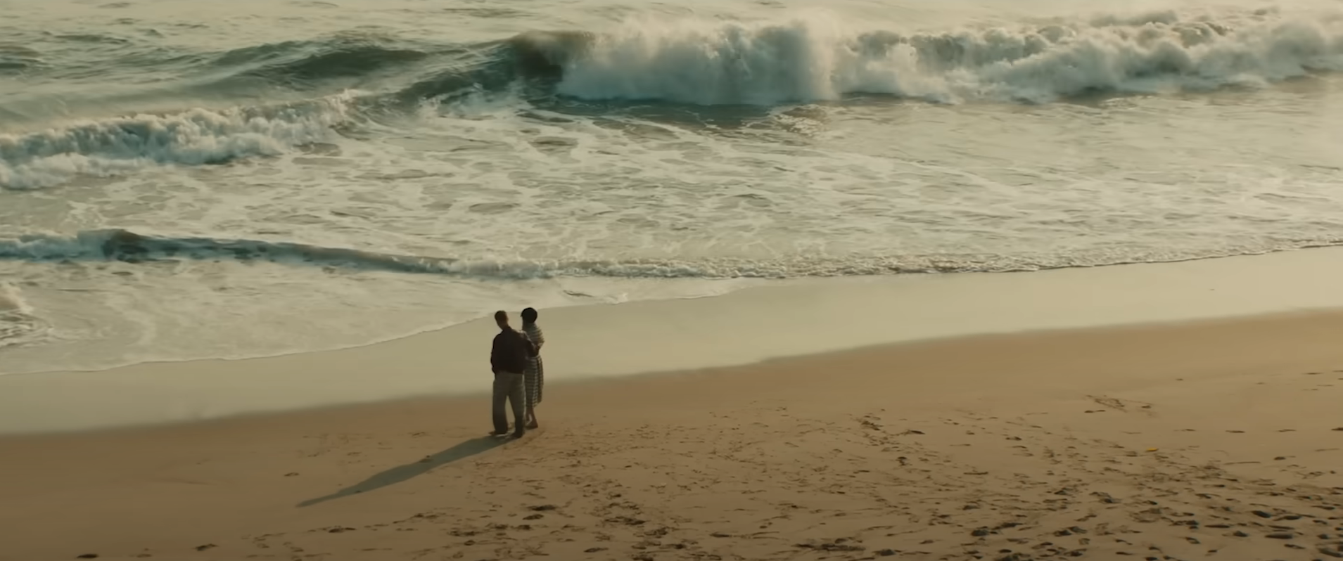 아버지의 유골을 바다에 뿌리고 있는 모습