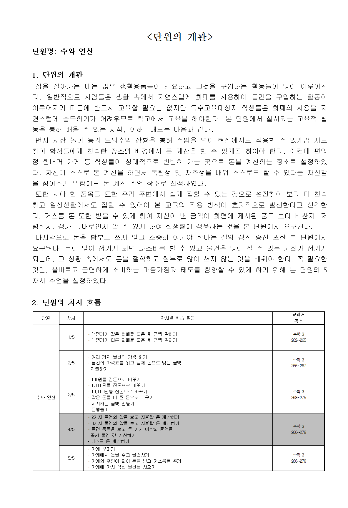 위 표를 '지도안'이라고 부르는데, 지도안 중에서도 세부적으로 쓰는 '세안'과, 비교적 간단하게 쓰는 '약안'이 있다. 위 지도안은 세안에 속하는데, '수학'교과로서 화폐의 액면가를 이용한 계산보다는 편의점이나 햄버거 가게등에 가서 줄을 선 후 키오스크를 이용하거나 화폐를 직접 건네서 돈 계산하는 방법에 더욱 초점이 맞추어져 있는 수업이다. 수학 교과는 '계열성'이 중요한 과목이라고도 한다. 계열성이란, 배우는 순서나 난이도를 처음엔 간단하고 쉬운 것에서, 점점 복잡하고 어려운 것으로 배워나간다는 성질을 의미한다. 특수교육에 정답은 없다. 실용적인 것 위주로 공개수업을 하고 싶다면 그렇게 해도 되고, 교과적인 것을 위주로 하고 싶다면 그렇게 해도 된다. 위 수업은 계열성에 목적을 둔 수업보다는 실생활에 적용가능한 실용적인 것에 초점을 둔 공개수업이었다. 또 공개수업은 사전협의회, 사후협의회가 있는데, 사전협의회에선 어떠한 수업을 할 것이며 어떻게 준비할 것인지 등 지도안과 함께 발표한다. 사후협의회에선 본인의 수업이 어떠하였고, 어떠한 점이 잘되거나 잘안되었고, 참관자들의 시점에서도 말씀을 듣게 된다. 물론 이 지도안을 만들 때 필자 혼자가 아닌 특수 부장님께서 첨삭 해주셨는데 그래서 더 완성도 있는 지도안이 나온 것 같다. 또 완성도 있다는 말은 필자가 한 말이 아니라 다른 선생님께서 해주신 말이다.