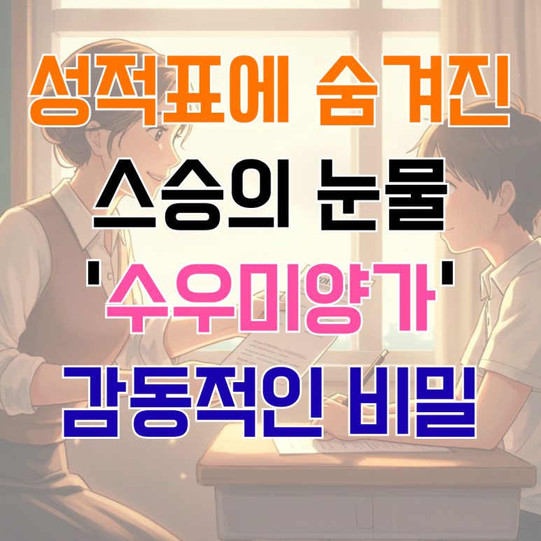 '수우미양가'에 담긴 진짜 뜻, 아시나요? 단순한 성적인 줄 알았던 다섯 글자에 숨겨진 스승의 따뜻한 사랑과 응원의 메시지를 알려드릴게요. 성적표의 감동적인 비밀, 지금 바로 확인해보세요!