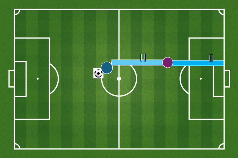 예를 들면, 우리팀 중 맨 뒤에 있는 사람이 골대와의 거리가 100m 떨어져있다고 한다면,
