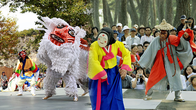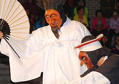 하회 마을에서는 탈춤도 물론 유명합니다. 주로, 양반들의 허세 등을 풍자하고자 시작하였으며,
