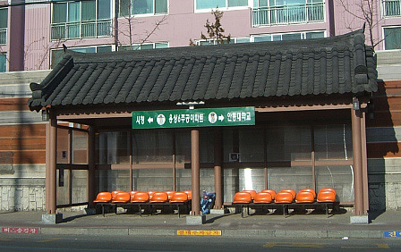 안동에 있는 경북도청과 버스정류장입니다. 특이한 건 모두 지붕이 기와로 되어있다는 점입니다.